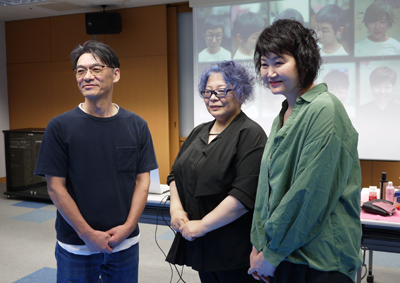 1日目は松江テルサにてモデルを使ったデモンストレーションを行い、夜は懇親会。2日目は松江理容美容専門大学校にて実技講習を行いました。